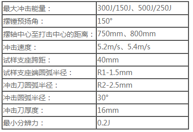 JB-W300A/W500A微機控制擺錘式?jīng)_擊試驗機技術(shù)參數(shù):